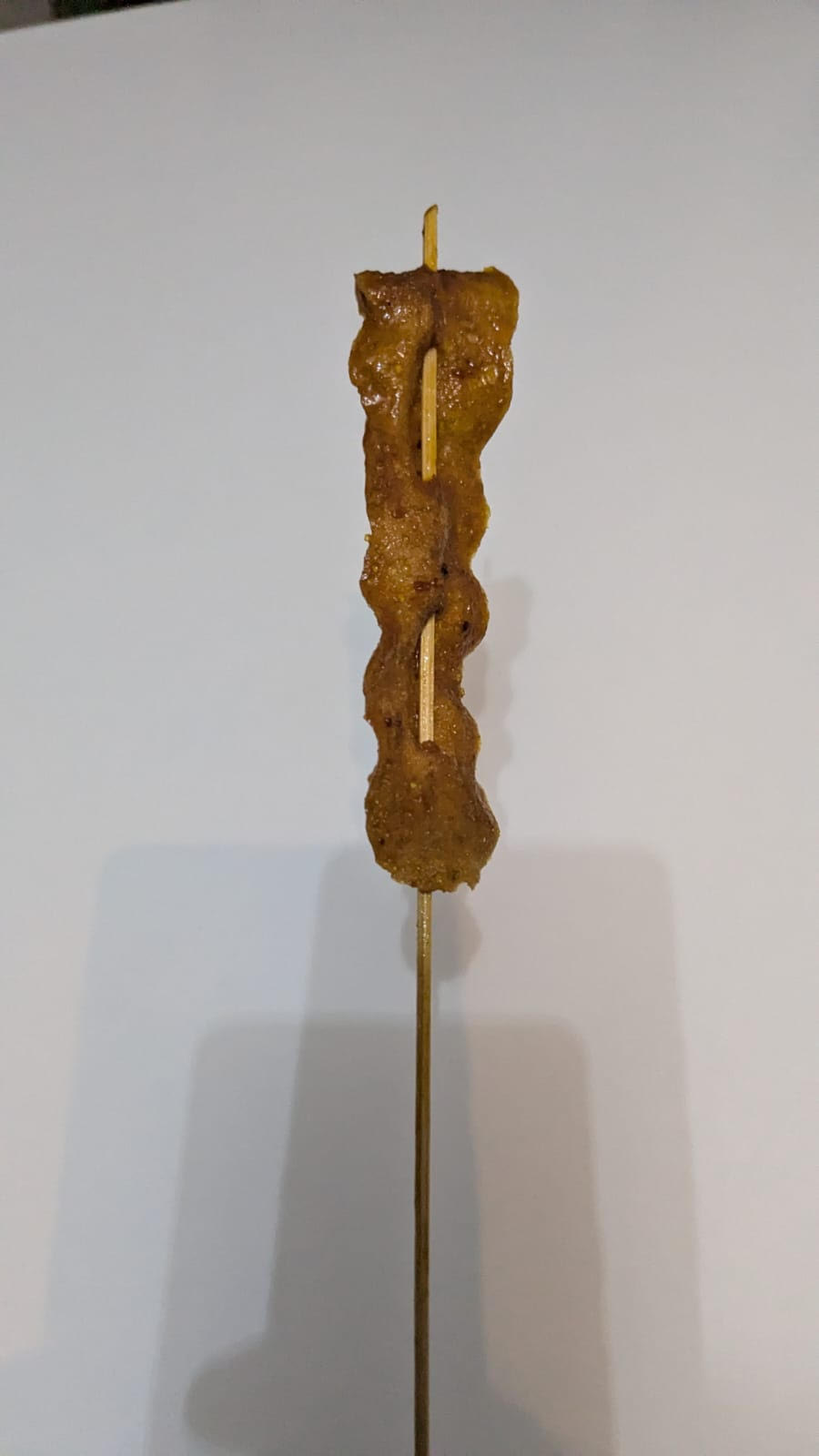 還記得兒時經過「辦館」、「士多」[1],不同的零食總會放在入口的正中位置。一些散裝或平易的小糖果放於前排易取的位置,兩旁所懸掛的,一邊是「金」字嘜頭的「魷魚絲」,另一邊是「眼鏡」型的巧克力。中間的,一就是附有「印水紙」的口香糖,不就是能當作「哨子」的薄荷糖。而放在最高的「王者」位置,絕大多數是這款小竹支串著的「魚塊」(不曉得這零食的正名是甚麼?),叫小孩子們站在這零食「聖壇」前,遠觀著這令人嚮往、教人垂涎的「高級」零食。一些較「富有」的同學,手執兩支,一支自己吃,另一支給他的同伴們分享,盡顯其慷慨、大方。